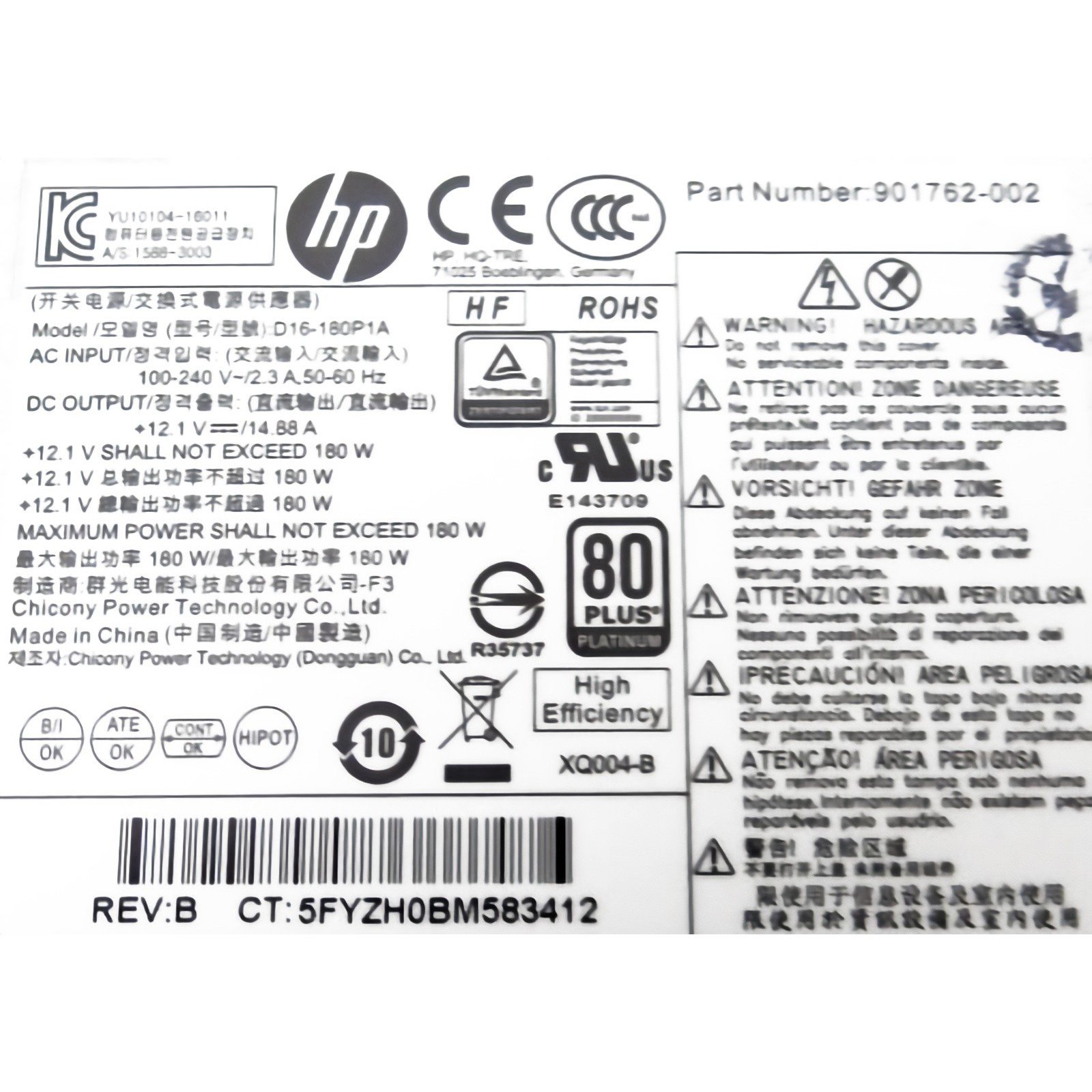 HP D16-180P1A 901762-002 180w