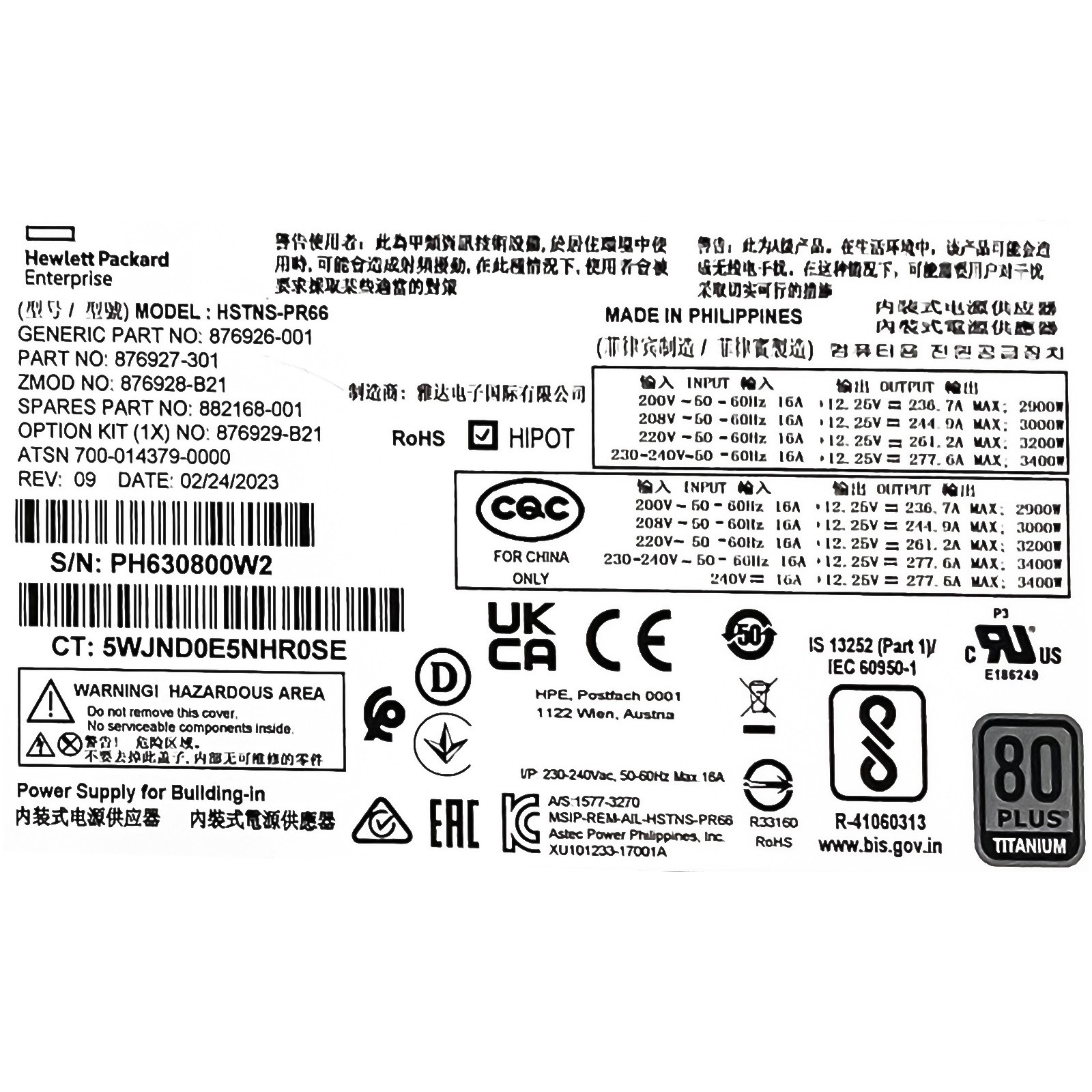 Hewlett Packard HSTNS-PR66 876926-001 876927-301 876928-B21 882168-001 876929-B21 700-014379-0000 3400 w