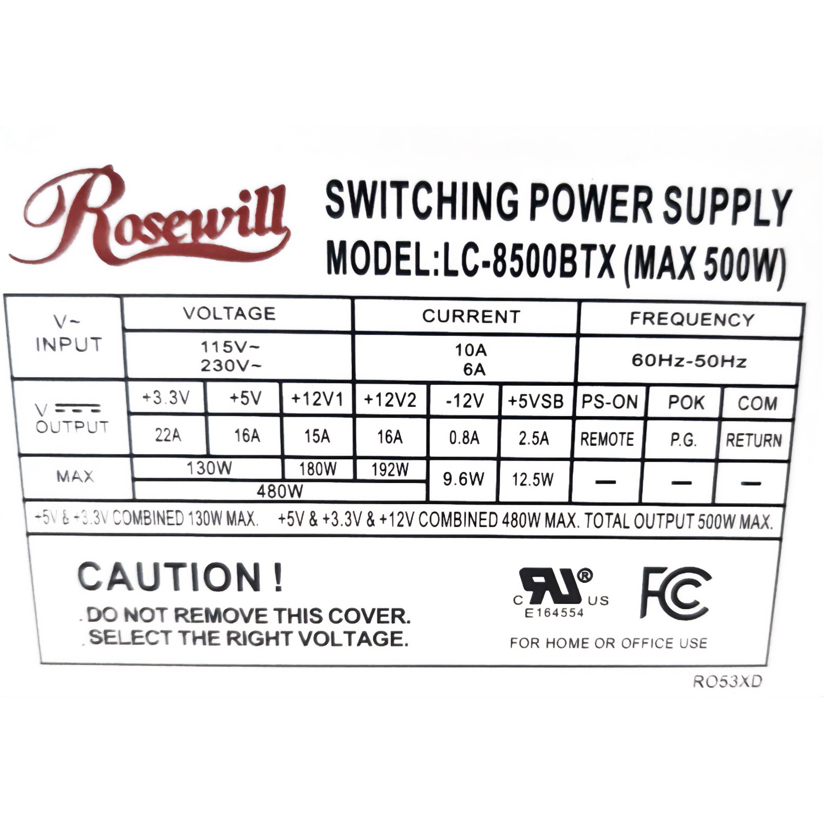 LC-8500BTX - 500w ATX - Nilox Arlt Rosewill PC Supercase DELCO