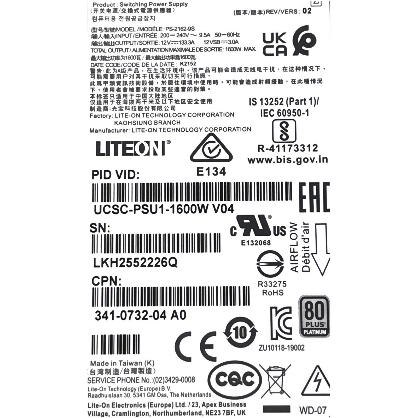 Lite-On PS-2162-9S LKH2552226Q 341-0732-04 A0 02 1600W