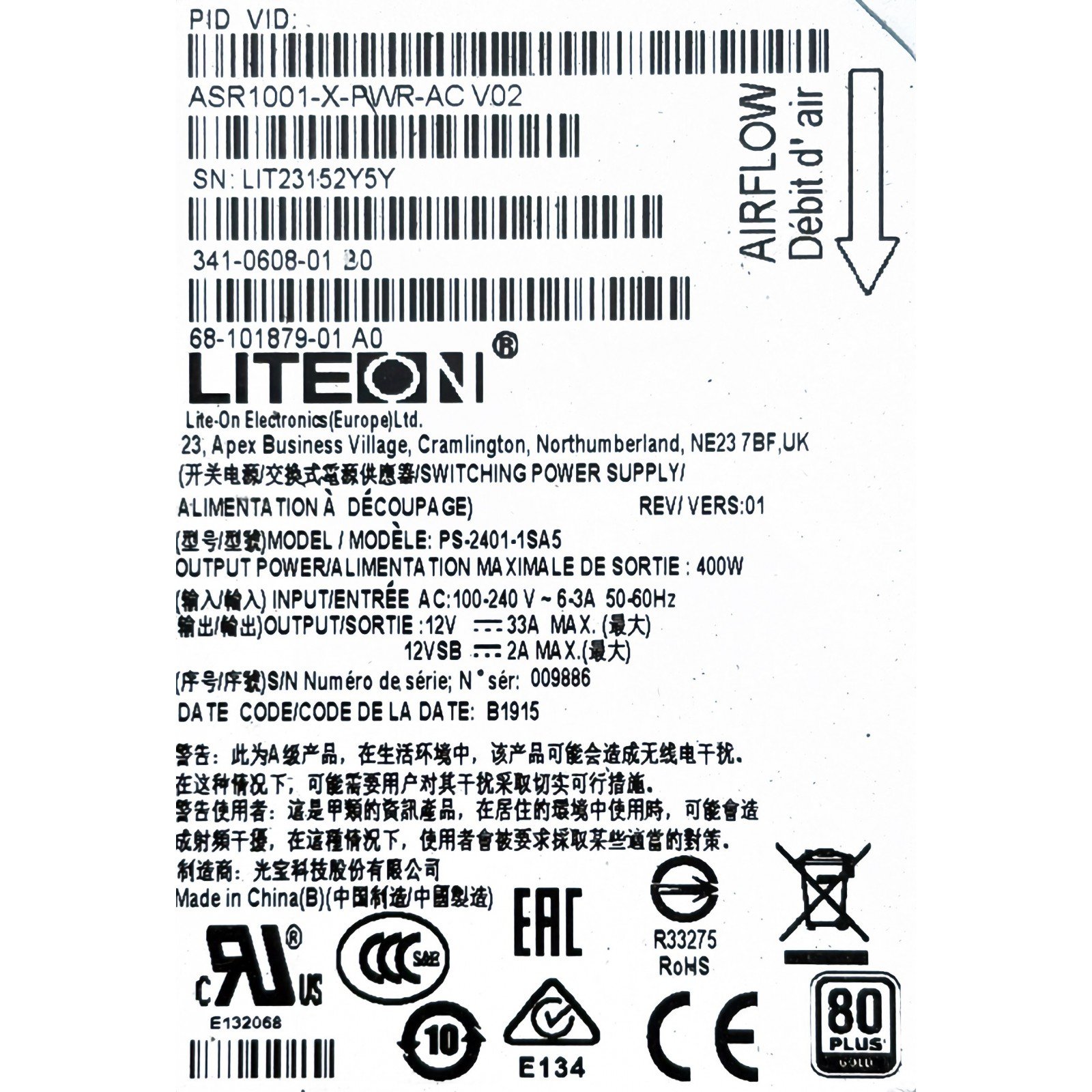 Lite-On PS-2401-1SA5 341-0608-01 68-101879-01 400w