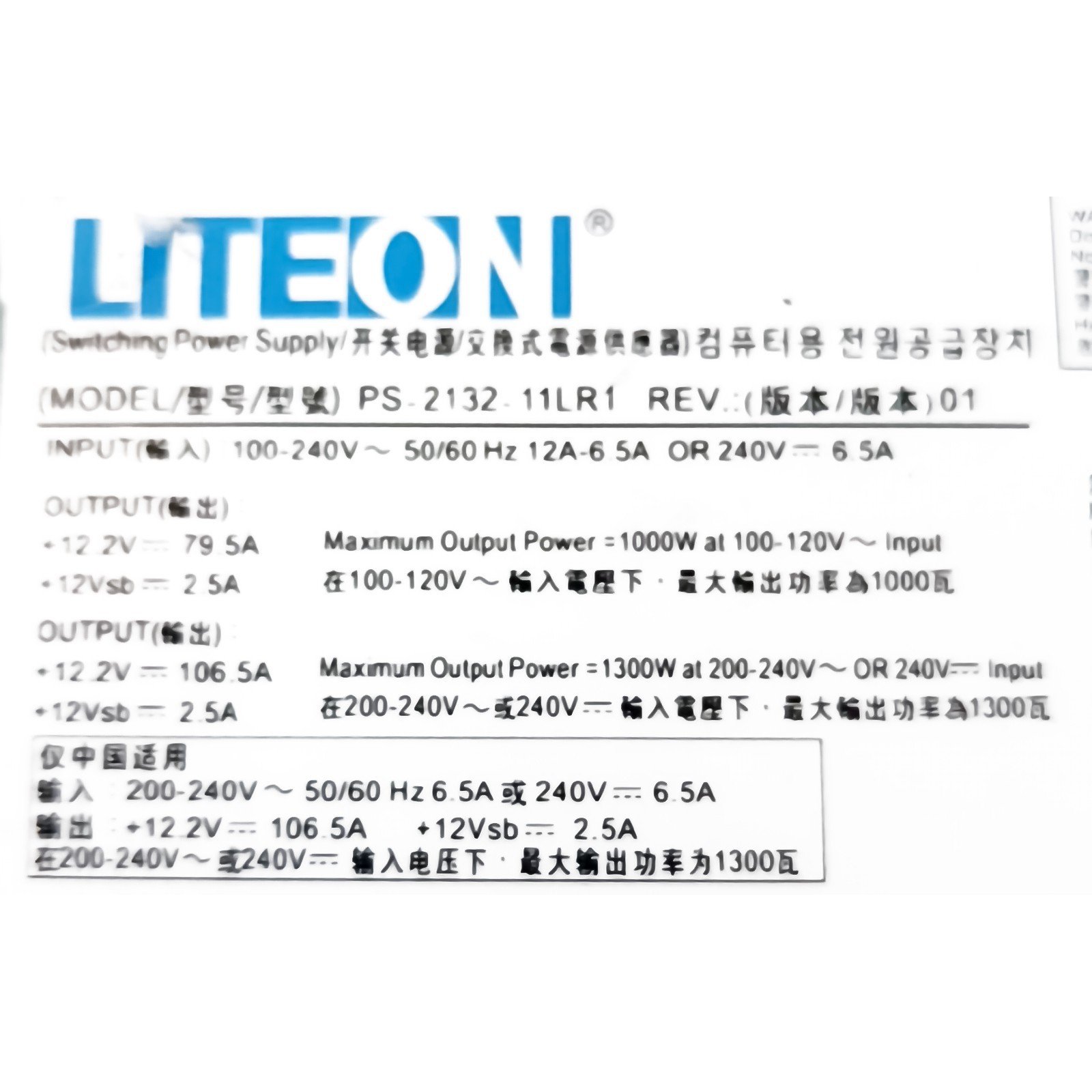 LiteON PS-2132-11LR1 1300 watt