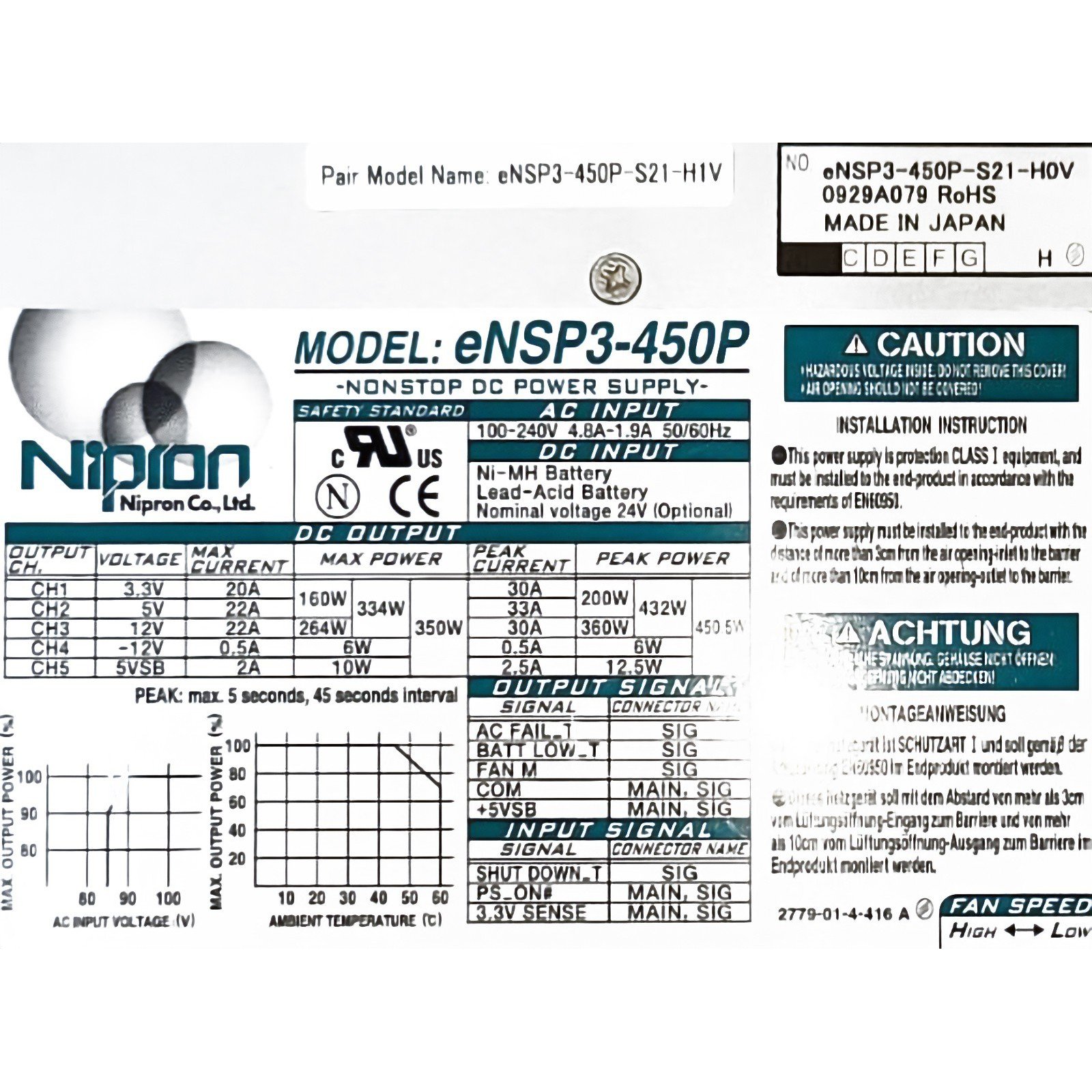 Nipron eNSP3-450P eNSP3-450P-S21-H1V eNSP3-450P-S21-H0V 450 w